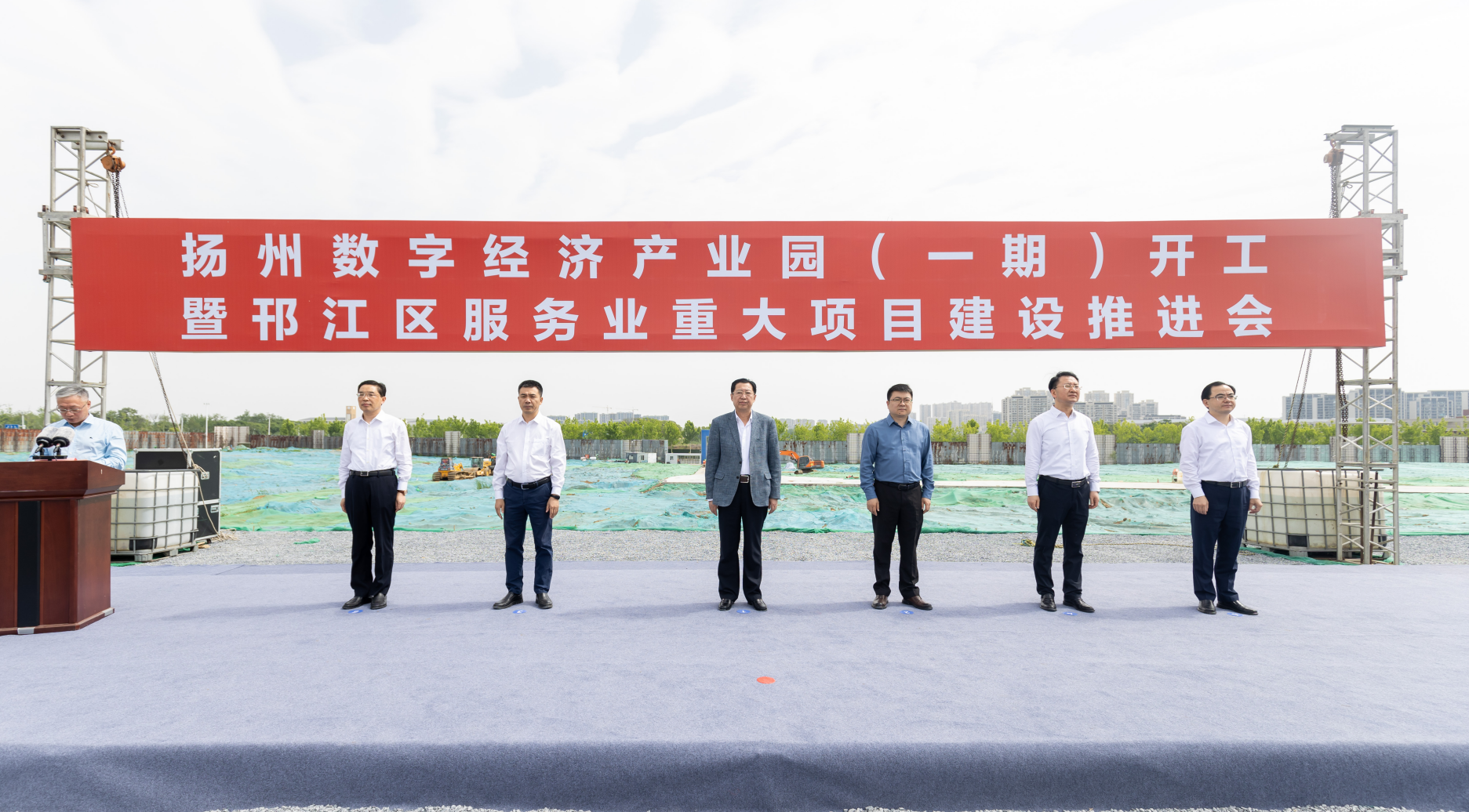 5月18日,中国五冶集团承建的扬州数字经济产业园(一期)项目开工仪式在扬州市维扬经济开发区隆重举行,扬州市委常委、市政府常务副市长潘学元宣布项目开工,中国五冶集团副总经理、时博电子党委书记、总经理张家元与参加仪式的各方领导共同为项目奠基培土。